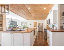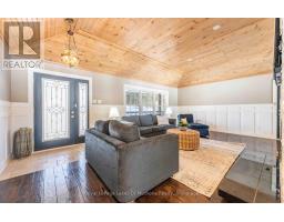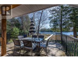 Exceptional offering, ideal 3.2 acres, 215' lakefront on pristine Pell Lake offering an Algonquin Park feel as you look across the lake towards the Limberlost Forest and Wildlife Reserve only minutes to Hidden Valley ski hill, golf courses and 15 minutes to vibrant downtown Huntsville. Pen Lake beach and boat ramp offering 40 miles of boating is less than 5 minutes away. Absolutely breathtaking views and such a serene setting with only 7 owners on the lake. This thoughtfully designed 1741 sq ft bungalow with full walk out finished lower level features 5 bedrooms and 3 full bathrooms and is nestled privately from the year round road. The main level boasts a gourmet style kitchen with huge center island, dining overlooking lake vistas, family size living room with vaulted pine ceilings and wood burning fireplace. Main level laundry. Primary bedroom boasts an ensuite and walk out double patio doors to the Muskoka room. 3 bedrooms main level and 2 in the lower. Lower level features great room for movie nights, games room including a foosball table, pool table, and electric fireplace. Adjacent room with bar, sink and fridge is great for entertaining or for additional guests. Main level large mud room/foyer could be good for an artist studio as well. Walk out on lakeside to decking with bbq and another access to the Muskoka room. Waterside firepit with all exterior furniture included. Dock was recently installed and has a deck/platform to enjoy sitting on the water and the fabulous island view! Lakefront is 3' deep at the end. Walk around covered deck from rear to front of the house. Large double car garage, air conditioning, new furnace October 2025, wired in generator, small barn style storage building and sheds for your firewood and outdoor tools and toys. Comes outfitted with furnishings, bedding, towels, boats on site, just a few staging items excluded. Equipped and ready for you to enjoy this summer! Airbnb ready if desired, ask for info and income. (id:50886)