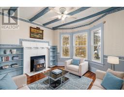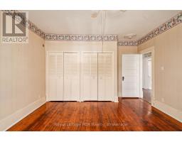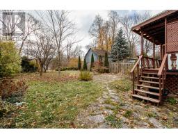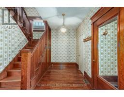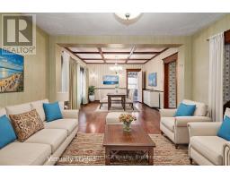 Step into a piece of enduring history with this magnificent 2.5-storey solid brick residence, a true testament to superior, timeless craftsmanship. The grand scale is immediately apparent upon entering the impressive foyer, framed by beautifully detailed entrance doors. Throughout the main level, gleaming, refinished hardwood floors reflect the natural light, guiding you toward the heart of the home. The kitchen and adjacent breakfast room feature a unique, striking stone floor, offering a blend of durability and old-world elegance, and providing direct access to a charming covered deck that overlooks the backyard. Ascend to the second level, where a bright, inviting family room provides a perfect retreat, centered around a cozy gas fireplace. This floor hosts two generous bedrooms, a spacious, well-appointed main washroom, and a tranquil sunroom offering picturesque, peaceful views of the backyard. The finished third level provides exceptional flexibility with two additional, private bedrooms and ample integrated storage. The lower level is built for entertainment, featuring a bright recreation room with a convenient walkout, providing seamless access to the spacious, private backyard oasis. This level also houses the utility and laundry rooms. Outside, the property is completed by a wired shed, ready for your projects or extra storage. This homes radiates character and is ready for its next chapter and awaits your personal vision to begin its new story. Recent upgrades include electrical, furnace, insulation in attic and wired smoke detectors. (id:50886)