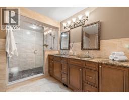 Stunning 2,374 sq ft custom 1.5 storey in LaSalle, kiddie corner from Paul Wilkinson Park. Exceptional curb appeal with whimsical landscaping, exposed aggregate drive, and covered porch with new epoxy finish. Open concept main floor features 9-ft ceilings, a 17x15 dream kitchen with walk-in pantry, dining with elegant backyard views, cozy family room with gas fireplace, 2 bedrooms, full bath, and convenient laundry/mudroom. Private upper-level primary suite with luxury ensuite, double shower & double sinks, and massive custom walk-in closet. Fully finished basement includes family room with gas fireplace, custom wet bar with dishwasher, wine rack, and spot lit liquor shelving, 2 large bedrooms, steam shower bath, and tons of storage. Grade entrance to your private oasis with in ground pool, hot tub, firepit, Euro-shed, mature cedars, 4-zone sprinkler system, and covered porch with ceiling fan. Truly an entertainer’s dream in a prime LaSalle location! (id:50886)