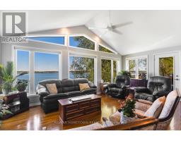 Welcome to 1435 County Road 2, a rare find on the beautiful St. Lawrence River! If you're looking for peaceful waterfront living, step inside and be instantly greeted with a full view of the river through a wall of large windows. Open-concept living and dining areas. The built-in wall unit includes a buffet, china cabinets, lighting, and lots of storage. Custom walnut kitchen with a generous island including prep sink and seating, designed for creating great meals and gathering with friends. Just off the kitchen is a 3-piece bath with a walk-in shower and a separate laundry room with a built-in ironing board. 2-car oversized garage with workshop area. The primary bedroom offers built-in drawers and cupboards and a spacious walk-in closet. Access the large deck from the living room or bedroom. Enjoy quiet mornings with coffee and an expansive river view, and watch the ships go by. Soak in the river views sitting on the deck, with a railing of glass panels, a dining area with built-in seating and storage cupboards, ideal for year-round BBQs. The lower level offers the same large windows as the main-level living room and includes two additional bedrooms, a 4-piece bath with a large soaker tub, a large walk-through storage room, and a big flexible room that can be used as a family room or office. The view may be too distracting to get much work done! Walk out to a covered patio and follow the stairs to the river to a 100 ft wide lawn, a cabin for sleeping,storing kayaks,swimming and fishing supplies. Attached is another deck for dining or lounging. Beyond the cabin is a beach area. Wildlife abounds,every day when you see the resident bald eagle sitting on its perch in the trees, ready to dive for a fish. Sometimes you'll be greeted by a heron standing on the seawall or at the beach. Watch ships and sailboats float by on the mighty St. Lawrence. Surrounding the home are vibrant, low-maintenance perennial gardens and fruit trees (apple, pear, plum,cherry, and saskatoon). (id:50886)