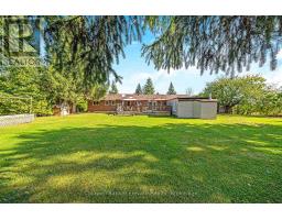 This updated bungalow with plenty of country charm and modern convenience is tucked away in rural Halton Hills, close to the hamlet of Ballinafad. Nestled on a half-acre lot, backing onto picturesque farm fields and a seasonal creek, this home is just a 10-minute drive from Acton and Georgetown and 25 minutes from the 401. Step inside to a beautifully renovated foyer with custom cabinetry and a cozy electric fireplace - a welcoming first impression. The main level is elevated by custom crown moulding throughout and recessed lighting in the living areas. The custom kitchen features soft-close cabinetry, corian countertops, a spacious pantry, and the adjoining dining room walks out to the backyard deck. Relax in the inviting living room, where a wood stove creates a cozy atmosphere. Custom built-ins offer style and storage, while a large picture window frames views of the serene landscape outside. The newly finished basement expands the living space with a bright rec room with laminated vinyl tile, a sleek 3-piece bathroom and a home office/den. The private treed backyard boasts a large split-level deck, ideal for outdoor dining or stargazing under the country sky. Extra attention has been paid to the home's construction to ensure a warm and dry interior. The main level ceiling and the lower level have been double insulated, there is an extra sump pump, and the front downspout leads away to a French Drain in the North side yard for extra protection. The double-car garage has been converted into a workshop and gives access to a second workshop, complete with power and a wood stove. With multiple sheds and an insulated storage container, there's no shortage of space for all your tools and toys. Experience the best of rural living while staying connected to the convenience of nearby towns, trails, and community amenities. (id:50886)