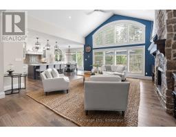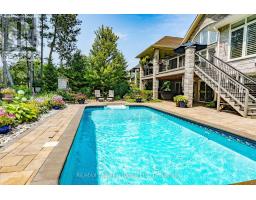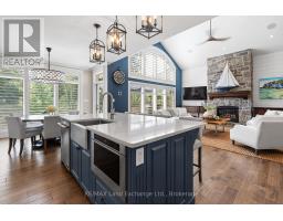 Welcome to this stunning executive bungalow, a short walk to the harbour and Main Beach, in one of Port Elgin's most sought-after neighbourhoods.This home features a stone exterior on a beautifully landscaped, fully fenced lot with a saltwater pool, hot tub, outdoor fireplace, and sprinkler system, all backing onto a mature forest for exceptional privacy. Inside, enjoy an open-concept main floor with quality finishes including hardwood floors, California shutters, and upgraded lighting. The great room features a soaring cathedral ceiling, abundant natural light, and a gorgeous stone fireplace. The heart of the home features a chef's kitchen - equipped with Jenn-Air appliances: a 48" convection range featuring six burners and a double oven. French-door refrigerator, drawer microwave, wine fridge, and dishwasher. White cabinetry, a striking island with stone countertops, and a custom walk-in pantry complete the space. The generous eat-in area overlooks the backyard and walks out to a spacious deck and covered outdoor living area, ideal for entertaining or relaxing by the pool. A separate dining room with a coffered ceiling and French doors offers space for formal gatherings. The primary suite is a luxurious retreat with an oversized shower, soaker tub, and large walk-in closet. Two additional bedrooms on the main floor, each feature 4-piece ensuites and walk-in closets. A stylish powder room for guests, laundry, and heated double garage complete the main floor. The finished walk-out basement includes a cozy sitting area with fireplace, wine cellar, a large family media space, and wet bar. Two guest bedrooms with walk-in closets, full bathroom, plus storage, a workshop, and cold room complete the lower level. With upgrades and details too numerous to list - this home is truly a must-see! Located close to the Lake, trails and all Saugeen Shores has to offer, this is a rare opportunity, you won't want to miss it. (id:50886)