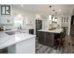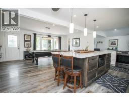 Welcome to this beautifully updated 3+2 bedroom, 2 full bathroom side split, set on a private 0.9-acre lot. The backyard is an entertainer’s dream, featuring a 20' x 40' saltwater pool (10 ft deep) with a new pump (2025), updated liner (2021), concrete surround, deck, and storage shed. Inside, you’ll find a stunning renovated kitchen (2021) complete with quartz countertops, white shaker cabinets, pendant and pot lighting, a pantry, a large island with storage, and stainless-steel appliances, including a wine fridge. The open-concept layout flows into the dining area (currently used as a games space) and bright living room, featuring large windows, an electric fireplace, and sliding doors to the backyard (2023). Upstairs offers a spacious primary bedroom, two additional bedrooms, and a 3-piece bathroom with a stand-up shower. The lower level provides two more bedrooms, a 4-piece bathroom with tub/shower combo, and plenty of storage, including a laundry area. Combining modern updates with incredible space and privacy, this home is the perfect retreat. Don’t miss your chance to own this amazing property! (id:50886)