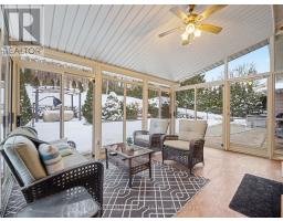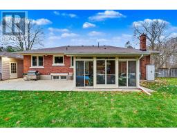 Executive detached bungalow situated on a premium 100 x 174.5 ft deep lot in the prestigious Hespeler Village. This rare property offers exceptional privacy, backing directly onto the Schiedel Woodlot, with private trail access from your very own backyard. Inside, you're welcomed by a warm and inviting living room featuring upgraded floors, abundant natural light, and a cozy gas fireplace. The custom chef's kitchen impresses with granite countertops, stainless steel appliances, and ample cabinetry-perfect for both everyday comfort and entertaining. The main level is complete with three generous bedrooms featuring upgraded closet doors and a fully renovated bathroom. Step into the beautifully crafted 3 season sunroom, offering peaceful views of mature trees and unmatched privacy. The fully finished lower level expands your living space with a large open-concept recreation area, a second gas fireplace, and a full bathroom. An additional multi-purpose room-ideal for a music room, home office, gym, or guest suite-adds flexibility. The lower level also includes a bar area, storage, and a spacious utility room. (id:50886)
