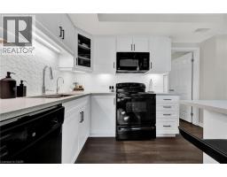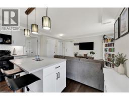 $175 MonthlyWow! This charming 1-bedroom, 1-bathroom condo is turnkey, and move-in ready. Ideally located just steps away from cafes, restaurants, shops and the expressway. Thoughtfully designed, the layout is open bright, and inviting throughout. The updated kitchen features a generous island, quartz countertops, and a stylish tile backsplash—making the most of every inch of space. The open layout is ideal for casual living and entertaining, while multiple closets provide rare storage options for a condo of this size. Enjoy the comfort of in-suite laundry, a spacious balcony for relaxing, and a dedicated parking spot. Cute, budget-friendly, and move-in ready, this condo is a smart choice for first-time buyers or anyone looking for low-maintenance living. Don’t wait, it won’t be available for long! (id:50886)