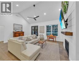 A rare find, luxury meets charm. A quiet, treed lane where neighbours have lived for years. Safe for evening walks, friendly for pets & families. Ideally nestled btwn Kingsville & Leamington. A rare mix of peace, community & accessibility. Set on a private ½-acre lot at the end of the street captures that feeling of retreat & connection. Framed by century-old trees, offering rare privacy on all sides. The property's low-maintenance landscaping with perennials blooming in every season. At Christmas, the setting is the perfect backdrop for magical lights & gatherings. Step inside to discover a home that feels both grand & effortlessly livable. The thoughtful one-floor layout is designed to suit a growing family or a mature buyer. With 3 large bdrms, 2.5 bths on the main lwel, heated bthrm floors, an o/sized primary suite w/ walk-in closet & spa-inspired ensulte, whispers comfort & quality. Natural light floods the interiors. Finished basement w/ full bthrm & room for two more bdrms, offices, or hobby spaces, along with generous storage. Outdoors, enjoy a 2-tiered deck & perfectly sized yard that feels private, wooded and easy to maintain. Room for a pool, play space, or evenings spent under the canopy of trees. A 2 car garage w/ ramp access adds practicality. The location is unmatched: 2-min walk to sushi, and convenience store, Quick 5-min drive to schools, groceries, arenas, and restaurants. It's a home where life feels easy, joyful, and a little bit magical. (id:50886)