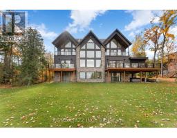 Introducing Elysian Peaks - a breathtaking custom waterfront estate. Perfectly positioned on 104 feet of pristine Balsam Lake shoreline, this residence blends architectural excellence, timeless craftsmanship, and lakeside luxury across nearly 6,000 sq. ft. of finished living space. Built in 2021, the home features soaring cathedral ceilings, an open-concept layout, and expansive windows framing sweeping lake views. The chef's kitchen with premium appliances flows into the dining area and dramatic two-story great room centered around a stunning stone fireplace - a space that embodies warmth and sophistication. Offering 6 bedrooms and 7 bathrooms, every guest is treated to privacy and comfort. The main floor includes the primary suite with a private lake-view balcony, 5-piece ensuite, and walk-in closet, plus two guest bedrooms, one with a private ensuite, and a large laundry/mudroom with access to the ultimate triple-car "dream garage" - complete with a car hoist, organizational shelving, custom cabinetry, and ample room for all your toys. The second floor showcases two additional bedrooms, each with private ensuites and balconies, set on opposite wings of the home and connected by an elegant catwalk-style walkway overlooking the main living area. The walkout lower level is an entertainer's dream with a full wet bar, family and gym areas, two guest bedrooms, two bathrooms, and secondary garage access. Outside, enjoy a firepit lounge, hot tub, and powered concrete pad ready for a future double dry-slip boathouse, along with a private dock, sandy-bottom waterfront, and gorgeous lake views. Additional features include generator backup, heated basement floors, drilled well, in-ground sprinklers, and high-speed internet. Elysian Peaks redefines modern waterfront living on Balsam Lake (id:50886)