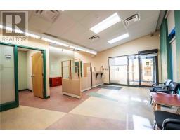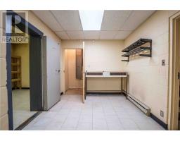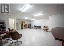 This 1,722 sq.ft. commercial building, formerly the Caisse Populaire Desjardins, is configured for professional office or retail use and is ideally suited for single-tenant occupancy. The main floor features a vestibule, customer service area with teller counter, open office space, central corridor with rear entrance, four private offices, a small administration area, storage space, a vault, and a cubicle area. The fully finished basement includes a large conference room, staffroom with kitchenette, two 2-piece washrooms, a spacious storage room and closet, a second vault, IT closet, and a utility room housing the main electrical distribution equipment and additional storage. (id:50886)