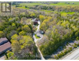 Live and Earn on 10 Private Acres on the Bruce Peninsula. Tucked into a quiet, wooded 10-acre lot is a striking log home, warm, light-filled, and beautifully maintained. The great room with cathedral ceilings and a stone fireplace is flanked by two sunrooms with skylights and flagstone floors. The handsome kitchen is modern and spacious with a large island and plenty of natural light. There's a main floor bedroom and full bath, with two more bedrooms upstairs, one with its own balcony, and another full bath. Altogether, a gorgeous home on landscaped grounds surrounded by woods. Set well apart from the house is a separate rental building, a converted bungalow with three fully independent units. One is a two-bedroom 'cottage' with full eat-in kitchen and large living area. The other two are efficient, open-concept guest suites, each with coffee bar, dining area, two queen beds, and their own private bath. All units are clean, bright, and sold fully furnished. Located just off Hwy 6 in a prime tourism area known for hiking, beaches, and Georgian Bay access. A smart setup for anyone looking to run a business from home while enjoying the beauty of the Bruce. Just a short drive to Wiarton and its amenities including shopping, restaurants, hospital, and school. (id:50886)