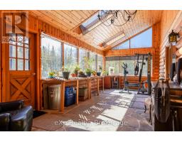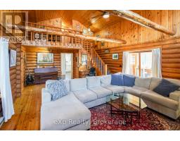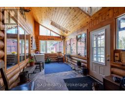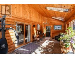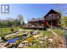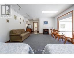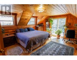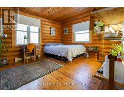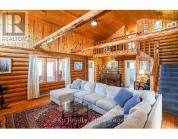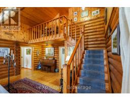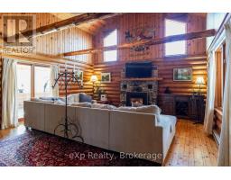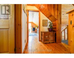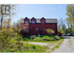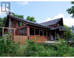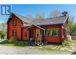 Live and Earn on 10 Private Acres on the Bruce Peninsula. Tucked into a quiet, wooded 10-acre lot is a striking log home, warm, light-filled, and beautifully maintained. The great room with cathedral ceilings and a stone fireplace is flanked by two sunrooms with skylights and flagstone floors. The handsome kitchen is modern and spacious with a large island and plenty of natural light. There's a main floor bedroom and full bath, with two more bedrooms upstairs, one with its own balcony, and another full bath. Altogether, a gorgeous home on landscaped grounds surrounded by woods. Set well apart from the house is a separate rental building, a converted bungalow with three fully independent units. One is a two-bedroom 'cottage' with full eat-in kitchen and large living area. The other two are efficient, open-concept guest suites, each with coffee bar, dining area, two queen beds, and their own private bath. All units are clean, bright, and sold fully furnished. Located just off Hwy 6 in a prime tourism area known for hiking, beaches, and Georgian Bay access. A smart setup for anyone looking to run a business from home while enjoying the beauty of the Bruce. Just a short drive to Wiarton and its amenities including shopping, restaurants, hospital, and school. (id:50886)