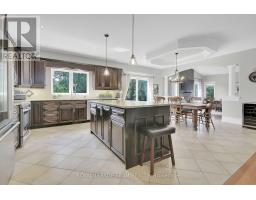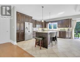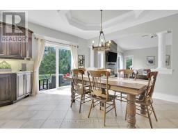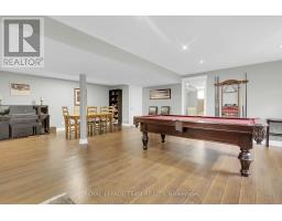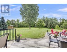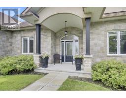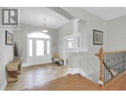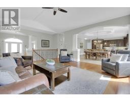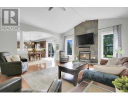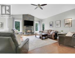 Welcome to this stunning, expansive bungalow, originally the builder's model home, offering a spacious, thoughtfully designed layout, adjacent to parkland. Step inside and you're greeted by an oversized foyer that opens to an airy, open-concept main floor featuring 9-ft ceilings, hardwood floors, and a cathedral ceiling in the Great room. A sleek slate-tile gas fireplace anchors the space. The kitchen is a chef's dream - massive in size, with rich wood cabinetry, granite counters, tiled backsplash, crown moulding, under-cabinet lighting, and an extended centre island with seating. The main floor also includes a convenient home office tucked at the front of the house, offering views of the landscaped front yard. The primary bedroom suite is tucked in its own wing, and is a true retreat, complete with a walk-in closet and a luxurious 5-piece ensuite featuring a deep tub, custom tiled shower, and dual sinks. Two additional bedrooms sit on the opposite wing of the home, offering privacy and share a 4-piece bath. A powder room and a full laundry room with upper cabinets round out the main level. Downstairs, the professionally finished basement expands your living space with a huge rec room, games area, home gym, fourth bedroom, den/guest room, and a full bath, perfect for entertaining or multi-generational living. Outside, enjoy relaxing on the extended deck, interlock patio, hot tub, fully landscaped yard with an inground sprinkler system, and a large covered front porch to relax on summer evenings. Large shed for extra storage, Generac link, and invisible fencing to keep your pets safe. The oversized 3-car garage is fully insulated, and the mudroom entry includes a closet. Enjoy custom trim details like crown moulding, oversized baseboards, and upgraded door/window casings with stylish headers throughout the home. Every detail has been carefully curated in this one-of-a-kind, move-in-ready property. Walking trails surround the community and lead to the Rideau River. (id:50886)