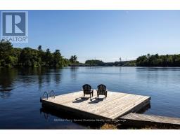 RARE IN TOWN RIVERFRONT HOME! PEACEFUL WATER VIEWS OVER THE SEGUIN RIVER! 294.9 ft Contour Shoreline, Natural sandy beach, Private dock, Convenience of Town water & sewer, Park-like setting, Detached garage/dry boathouse, This spacious 3 bedroom, 3 bath home is ideal for retirees or growing families, Offering main floor laundry, Primary bedroom with walk out to a large deck overlooking the water, Open concept design, Large principal rooms, Main floor family room, Classic covered front porch viewing water, Bright walkout lower level offers bedroom, 3rd bath, Recreation room with walk out, New shingles, 2020, Natural gasfurnace & central air, IDEAL LEVEL LOT!, Perfect for family fun, gatherings, gardening, Desirable .83 Acre waterfront Home or Vacation Lake House! (id:50886)