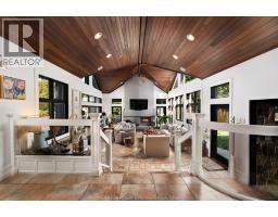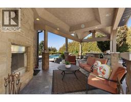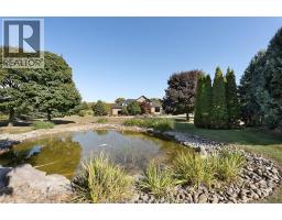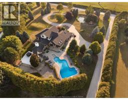 A rare offering — this exquisite custom-built estate with approx 7,500 sq ft is perfectly set on 3+acres of manicured grounds just minutes from charming downtown Kingsville. Every detail is designed for elevated living and effortless entertaining. It features 5 bedrooms, 4.5 baths, 7 fireplaces, soaring 10 ft ceilings, and a stunning full walkout lower level opening to an English sunken garden. This home is complemented with an in-law suite and premium finishes throughout. This smart home has an integrated sound system, automated blinds, and heated floors. Relax in your private retreat with the inground pool, hot tub, and covered lanai, cozy up by the natural fireplace. The tranquil pond and private island offers hammock time or camping for the kids. Chef’s dream kitchen with 14ft Cambria island, walk- in pantry, professional appliances and a dumb-waiter for serving in the lower level. It is flooded with natural light and anchors the home. Primary bedroom features a walk-in closet and a bank of custom cabinetry, en-suite bath and Juliette balcony overlooking mature trees. 3 bedrooms grace the upper floor and lead to the separate in-law suite with lounge and kitchenette area with dedicated entrance. The heated pole barn with separate drive completes this truly exceptional property — a rare fusion of luxury, lifestyle, and location. (id:50886)