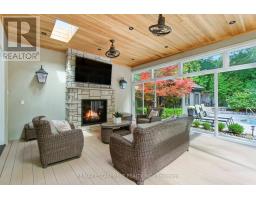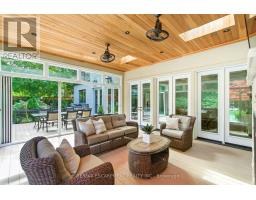Stunning custom-built home in prestigious Mineola, designed with Feng Shui principles for harmony and timeless elegance. Set on a quiet, tree-lined street, this residence features a striking stone and smooth stucco exterior, legal parking pad, and a two-car garage. Inside, soaring ceilings, custom mouldings, and elegant wainscotting set a refined tone. The main floor includes a private office with built-ins and a formal dining room. The chef's kitchen boasts quartz counters, marble backsplash, Sub-Zero fridge, Wolf gas range with grill, and Miele dishwasher. Open-concept family room with coffered ceilings, stone fireplace, and custom lighting flows into a sun-filled breakfast area. The show-stopping Four Seasons sunroom features floor-to-ceiling Magic windows, skylights, and its own gas fireplace creating a year-round retreat. Upstairs, the primary suite offers vaulted ceilings, a spa-like ensuite with steam shower, heated marble floors, and a custom walk-in closet. All additional bedrooms include private ensuites with heated floors; one features its own balcony. The beautifully landscaped backyard is a private oasis with a heated saltwater pool, composite deck, and mature trees. Located minutes from top schools, lakefront parks, dining, and boutique shopping, this home delivers luxury, comfort, and convenience in one of Mississauga's most coveted neighbourhoods. (id:50886)