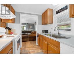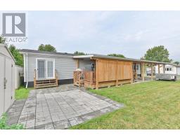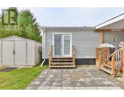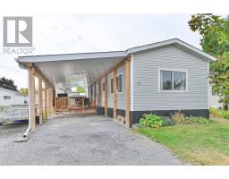 Welcome to sought-after Kenron Estates, where this updated mobile home offers comfort, style, and low-maintenance living. Carpet-free throughout, the home features a bright and inviting living room highlighted by a cozy Natural Gas Fireplace. The spacious primary bedroom opens through double French doors to a private patio, perfect for morning coffee or evening relaxation. A renovated bathroom adds modern convenience, while outdoor living is enhanced with a covered side deck, a newly constructed carport, and room for easy everyday enjoyment. Property includes two 10x12 vinyl clad sheds for extra storage A wonderful opportunity to join this welcoming community in a move-in-ready home. (id:50886)