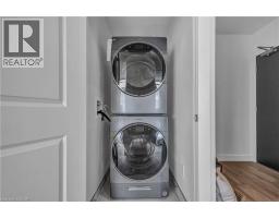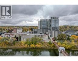 2 BED, 2 BATH CONDO IN THE HIGHLY DESIRED GASLIGHT DISTRICT! This upgraded 1,126 sq. ft. unit offers impressive views of the Grand River and Gaslight Square. Featuring 9-foot ceilings and an open-concept layout, the kitchen and dining area include shaker-style cabinetry, quartz countertops, backsplash, and upgraded appliances. Enjoy premium engineered hardwood throughout, large windows providing plenty of natural light, and in-suite laundry for convenience. Step out onto the spacious balcony with access from both the kitchen and primary bedroom — perfect for taking in the panoramic city views. This unit includes two underground parking spaces and access to exceptional building amenities such as a fitness centre, games room, study/library, and an expansive outdoor terrace with pergolas, fire pits, and BBQ areas overlooking Gaslight Square. (id:50886)