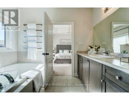 This beautifully upgraded, sun-filled 3-bedroom, 4-bathroom home (approx 1,800 sqft/2,700 with finished basement) is tucked away on a quiet, low-traffic street in prestigious Kleinburg. Meticulously maintained, it offers over $125,000 in upgrades and thoughtful features throughout. A double-door entry welcomes you into a bright foyer with 9-ft ceilings. Large windows fill the home with tons of natural light. The open-concept kitchen is a chefs dream, showcasing granite countertops, a centre island with breakfast bar, pantry cabinet, SS chimney hood fan and Carrera marble subway tile backsplash. The adjoining family room is perfect for everyday living and entertaining, while direct garage access and mudroom with a closet add convenience. Premium features include oak flooring, an oak staircase with iron pickets, pot lights, central vacuum and custom Silhouette window blinds. Upstairs, the luxurious primary suite offers a coffered ceiling, his & hers closets (walk-in + double) and a spa-like ensuite with soaker tub and glass shower. Two additional bedrooms share a full bath, alongside a laundry room with quartz counters and custom cabinetry. Every closet in the home is upgraded with custom built-in organizers for maximum storage.The finished lower level expands living space with an open-concept area for a rec room, gym, or playroom, plus a separate room with a window and closet - suitable as a bedroom or office, and a storage room and a cantina. Step outside to a professionally landscaped backyard with Permacon mega pavers, modern horizontal wood fencing, irrigation system (front & back), exterior smart lighting, dual side-gated access & gas BBQ hookup. Located in a highly desirable community near parks, trails, shops, cafés, golf courses, top-rated schools, with quick access to highways, the airport, and downtown via the 427 extension.This move-in-ready Kleinburg gem is not to be missed! (id:50886)