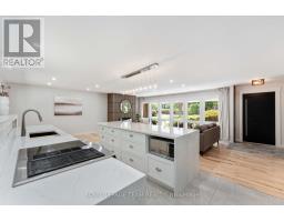 Renovated, refined, and perfectly placed on a private treed lot w/no rear neighbors! This exceptional bungalow backs onto peaceful parkland in the heart of Beaverbrook-one of Kanata's most sought-after enclaves known for its treed streets, top schools, and unbeatable walkability. Offering over 2,300 sq ft of beautifully finished living space, this home has been completely transformed with modern style and thoughtful design throughout. The warm open-concept main floor features new maple hardwood, designer tile, fresh paint, new windows, and an easy natural flow. At the centre of the home sits a showpiece kitchen with a breathtaking picture window framing the stunning treed backdrop, complemented by quartz waterfall counters and sleek new cabinetry. The main level also includes convenient laundry, a bright living room with a LED feature electric fireplace, chic updated bathrooms, ensuite bath, and three comfortable bedrooms with generous closets. The lower level offers exceptional flexibility with in-law suite or rental potential. Complete with a kitchenette, 3pc bathroom, a massive 23' bedroom with double closets, rough-in for laundry, new luxury vinyl plank flooring, a large storage room, and direct access to the private backyard-ideal for multi-generational living or guests. Outside, enjoy a peaceful yard with no rear neighbours, backing directly onto mature trees with access to Gow Park and Stephen Leacock School. Perfect for summer BBQs, playtime, or quiet evenings surrounded by nature. All of this in Beaverbrook- home to top-rated schools, scenic walking paths, community pools, tennis courts, the Kanata Leisure Centre, lush parks, nearby transit, and quick access to the Kanata high-tech hub, Kanata Centrum, and the future LRT. Immediate possession available. Renovated bungalows in settings like this are rarely offered. A must-see. (id:50886)
