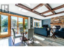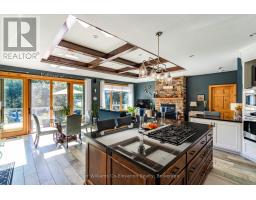 LIVE ON THE BEACH! This stunning custom-built home combines high-end luxury with relaxed beach life. The lower level walks out to a sandy yard extending directly to Georgian Bay. Just steps to the beach, stroll the shore or take a dip in the bay, then wash off in the outdoor shower, unwind in the beach-level hot tub, and soak in the views. From the street, curb appeal abounds with lush gardens and immaculate lawn with sprinkler system, plus a uniquely designed seating area with fire pit. Deceiving from the front, inside youll find generous living space. The open concept main area showcases 12 coffered accented ceilings w/ beam grid design, a floor-to-ceiling stone fireplace, imported Spanish porcelain tile, and a chefs kitchen with custom cabinetry, granite counters, Bosch 5-burner gas cooktop with downdraft vent built into a massive island with seating. Expansive Pella windows and doors (throughout the home) flood the space with light and open to the wrap-around composite deck. The spacious main-level primary suite offers its own private living area with gas fp, balcony with water view, 5-pc ensuite with jet bath & shower, alder wood floors + heated ceramic floors in Bathroom area, large dressing room w/ washer/dryer. Also on this level: a 2-pc powder room & pantry/mudroom with garage access. The walkout lower level includes 3 bedrooms, full bath, large rec room, utility/storage room, and an additional washer/dryer. Extras: 5 WiFi cameras/monitoring, full home generator, water treatment system, owned water heater (new in last year), premium siding, and wrap-around composite decking. Too many features to listcome see this exceptional property. LIFE REALLY IS BETTER AT THE BEACH! (id:50886)