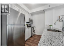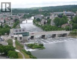 $600.86 MonthlyThis lovely one-bedroom condo offers stunning views of the Grand River, and features a spacious living room/dining area with an open-concept kitchen and breakfast bar. The kitchen includes four stainless steel appliances, and a convenient laundry closet with a stacked washer and dryer is also provided. The entire unit has been freshly painted and boasts laminate flooring, pot lighting, and granite countertops, making it truly move-in ready. From the living area, a patio door leads to a private balcony with beautiful river views. One of the highlights of this property is the expansive riverside terrace, complete with gardens and ample seating for your enjoyment. The terrace also offers gas fire pits and gas BBQs, perfect for entertaining guests. Residents will also have access to a fitness center, a guest suite, a party room, additional storage, and underground parking. The location is ideal, within walking distance to live theatre, river trails, a farmers' market, various shops, and restaurants. A must see! (id:50886)