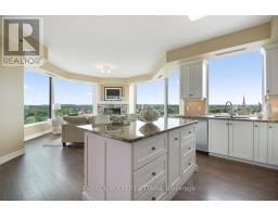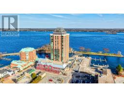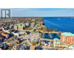 $1,488.05 MonthlyRarely offered for sale this northwest facing Tops'l Suite offers outstanding views of the Brockville portion of the 1000 Islands as well as the Brockville skyline. You and your guests will never tire of the views which change seasonally. This suite offers a beautifully portioned great room style anchored by a gas fireplace. The tailored kitchen cabinetry is in classic white with granite countertops. The huge window over the sink lets you keep an eye on the comings and goings of the city below. The spacious primary suite accommodates a king size suite with adjacent 5 piece ensuite and huge walk in closet. The secondary bedroom on the opposite side of the condo provides total privacy for visiting family or guests or makes an excellent office. Wide plank hardwood flooring throughout adds to the sense of space ceramic flooring in the baths, of course. The building amenities are second to none .... huge indoor pool, indoor and outdoor hot tubs, nicely equipped gym, reception rooms, games room, catering kitchen. One indoor parking space is equipped with an EV charger. A must see!!! (id:50886)