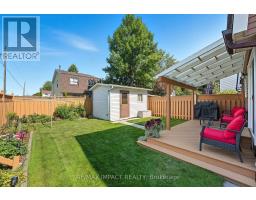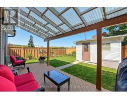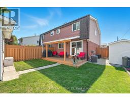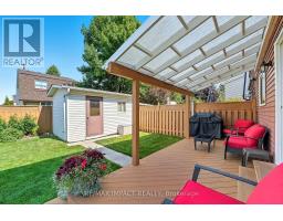 Welcome to this beautifully maintained three-bedroom, two-bathroom semi-detached home, perfectly set on a quiet, family-friendly street just steps from lakefront trails, parks, schools, shopping, transit, and Highway 401. The bright and inviting main floor offers a seamless flow, with a spacious living and dining area that's ideal for both everyday living and entertaining. The kitchen overlooks the private, fully fenced backyard, with a covered deck, large shed, and well-kept gardens. Upstairs, three generous bedrooms are filled with natural light, creating a warm and comfortable retreat for the whole family. The finished basement adds valuable living space with a cozy recreation room with a custom built-in bar, a convenient two-piece bathroom, and a large laundry and storage area to keep everything organized. The private double driveway has room for five vehicles, leading to a well-built storage building. There is no sidewalk to maintain or to prevent vehicles from fitting. Thoughtfully landscaped and boasting wonderful curb appeal, this home has been lovingly cared for and is truly move-in ready. Combining charm, functionality, and an unbeatable location, it's the perfect opportunity to settle into a welcoming community. New shingles 2023, furnace and AC 2021. (id:50886)