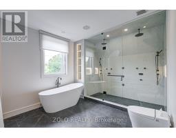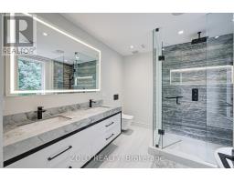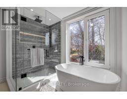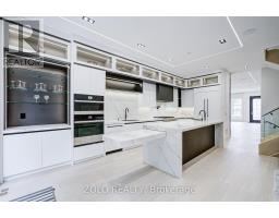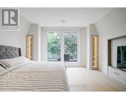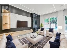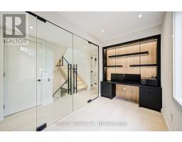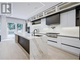 A rare offering of modern sophistication in one of Toronto's most coveted neighbourhoods. This expansive 3-storey family home with private elevator delivers over 4,600 square feet of luxurious living space, meticulously crafted with designer finishes, custom millwork, and stone fabrication throughout. **Main Floor Excellence** 10-ft ceilings, open-concept living/dining, and a show-stopping chef's kitchen with large centre island, retractable porcelain breakfast table, and premium JENNAIR appliances. The family room features a gas fireplace with custom built-ins and oversized windows overlooking greenery, plus walk-out to the backyard. **Upper Levels** Second floor offers three spacious bedrooms (each with ensuite bath), sleek home office with glass doors, and laundry room. The third floor is a magazine-worthy retreat: an entire level dedicated to the primary suite with spa-inspired ensuite featuring electric-heated porcelain floor, freestanding soaker tub, dual rain shower, smart toilet with dryer, oversized walk-in closet with organizers, sitting area with mini-bar, and balcony with greenery and skyline views. **Lower Level** Full kitchen with stainless steel appliances, recreation room with built-in speakers, guest/nanny suite, 3-pc bath, and walk-out to landscaped yard-ideal for entertaining or multi-generational living. Basement adds gym and state of the art media room, cold storage, and mechanicals. **Premium Features** in-floor heating throughout primary ensuites and lower level. Snow melt driveway and steps. Control4 home automation integrates audio, security, blinds, and climate control. **Prime Location** Close to high-ranked schools, parks, and amenities. **4+1 bedrooms | 6 bathrooms | Private elevator | Smart home automation** (id:50886)