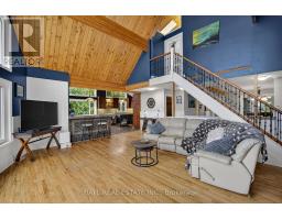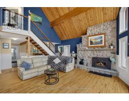 Welcome to 151 Peller Court, located in the luxury Rolling Hills Estates community just a few minutes south of Bobcaygeon on Pigeon Lake that is part of the Trent Severn Waterway. The custom-built home is perfectly situated on 4.8 acres surrounded by tall mature trees giving you all the privacy you will need. Experience some of the most beautiful breath-taking sunrises over the lake. The home boasts 3,242 sq. ft. of living area on three levels and an additional separate in-law suite with 359 sq ft. Featuring an open concept living with a stunning chef's kitchen, high-end appliances, large central island, abundant wood cabinetry and walk out to an expansive deck that is great for entertaining. The kitchen opens to the dining/living room with a stone fireplace, cathedral ceilings, hardwood flooring and floor-to-ceiling windows for an incredible view of the lake. The home entertains a primary suite with it own balcony for sunsets with an evening glass of wine, 2 more bedrooms for family or guests, 3 bathrooms, 2 large rec rooms with multiple walk outs in lower level, stone fireplace and bar. An additional lower outdoor patio provides lovely views of the lake and extra room for guests. An oversized detached triple car garage with a paved driveway, a 4th bay for a work shop and multiple out buildings completes everything. Section of property fenced for security of children and pets playing. This property includes a 1/17th ownership in the Rolling Hills Estates Association, including the boat launch, docking facilities, gazebo and the narrow strip of waterfront along the development. Peller Court is a municipally serviced road. (id:50886)