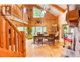 Stunning 3-Bedroom Log Home Near Westport on Quiet Christie Lake Escape to nature in this warm and inviting 3-bedroom, 2-bathroom log home located on the peaceful shores of Christie Lake, just off Devil Lake Road and minutes from Westport, Ontario. Set on a quiet, smaller lake where gas-powered motors are not used by residents , this property offers serenity, privacy, and a true connection to the outdoors. The home features a bright, open-concept layout with a spacious loft area, perfect for a family room, guest space, or home office. The partially finished walkout basement adds flexibility for future expansion or recreational use. Enjoy outdoor living from the large 8' x 40' deck, ideal for barbecues, entertaining, or simply relaxing in the fresh air. While the deck doesn't face the lake, you're just steps away from beautiful, clean water, perfect for swimming, kayaking, and fishing. Additional features include a hot tub, two storage outbuildings, and a peaceful, natural setting that invites relaxation and outdoor enjoyment. Christie Lakes calm, motor-free waters make it a true hidden gem for those seeking a slower pace and connection to nature. Whether you're looking for a tranquil year-round residence or a seasonal getaway, this property is a rare opportunity in the heart of the Frontenac region. (id:50886)