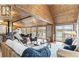 Welcome to your dream escape! This beautifully maintained 3 bedroom, 2.5 bathroom home sits right on the water's edge, offering the perfect blend of comfort, functionality, and natural beauty. Whether you're looking for a year round residence or a peaceful retreat, this property delivers. The open concept living, kitchen, and dining area is designed to impress, featuring wall-to-wall windows that flood the space with natural light and offer breathtaking, uninterrupted views of the water. A walk-in pantry adds extra convenience and storage for everyday living and entertaining. The spacious family room includes a cozy propane fireplace, creating a warm and inviting atmosphere. Just off the main living area, the screened-in porch complete with Sunspace windows lets you enjoy the outdoors in comfort, from spring through fall. Modern comforts include central air and a full standby generator for year-round peace of mind. Outside, enjoy both a shallow beach entry and deep water off the dock-perfect for swimming, kayaking, or boating right from your doorstep. Additional highlights include a 24' x 34' detached garage and an 11' x 15' outbuilding, ideal for a home office, gym, studio. Across the road, you'll find extra parking and a pole barn for added storage. This rare waterfront gem combines privacy, thoughtful design, and stunning natural surroundings! (id:50886)