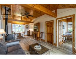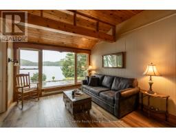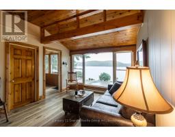 Welcome to this stunning year-round cottage sitting right at the water's edge on the south end of Haliburton Lake. Perfectly turn-key, this property offers incredible lake views from every angle, with a large lakefront deck, enclosed porch, and multiple outdoor living spaces to enjoy. Step inside to a warm and inviting open-concept living and dining area, complete with vaulted ceilings, tongue-and-groove pine walls, and a woodstove for cozy evenings. The updated kitchen is spacious and functional, while the 3 bedrooms provide plenty of room for family and guests. The lakeside primary bedroom offers breathtaking views, and the updated 3-piece bathroom features heated floors for added comfort. The beautifully landscaped property includes stone pathways, gardens, and multiple sitting areas. Enjoy a clean sand shoreline with deeper water off the dock perfect for swimming and boating. Additional features include a finished 3-season bunkie for extra living space, a side patio with awning, and an enclosed lakeside gazebo. Behind the cottage, you'll find an oversized, heated and insulated one-car garage with ample storage, a private 'man cave', rock gardens, and plenty of parking. Haliburton Lake is part of a sought-after 2-lake chain with premium boating into Oblong Lake. Located just minutes from Fort Irwin's restaurant, gift shop, and marina, and only 20 minutes to Haliburton Village for shops and amenities. All of this is only 2.5 hours from the GTA. This property truly has it all - don't miss your opportunity to book a private viewing today! (id:50886)