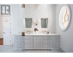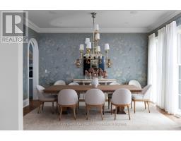 Nestled on a quiet cul-de-sac, this stunning Georgian-inspired estate offers nearly 9,000 sq ft of total living space on a rare pie-shaped lot backing onto the private Islington Golf & Country Club. Designed by New Age Design Architects, built by Easton Homes, and styled by Olly & Em Interior Design, the home exudes timeless elegance with its red brick and Indiana limestone exterior, black synthetic slate roof, and custom Lowen Douglas fir wood windows. Inside, the main floor features a luxurious primary suite retreat, an entertainers dream kitchen with Lacanche gas range, Miele appliances, and honed quartzite countertops, and elegant living spaces warmed by gas and electric fireplaces. Upstairs offers three bedrooms plus a lounge (fifth bedroom) and a craft/hobby room or office, while the lower level includes a movie theatre, a full spa with sauna, steam shower, cold plunge barrel, a home gym, and a glass-enclosed car gallery with a hydraulic stack lift for three cars.The home is equipped with Control4 smart home automation, radiant in-floor heating on all levels, six zoned HVAC systems, and an advanced UV light air purification system. Outdoors, the rear patio invites year-round enjoyment with infrared ceiling heaters, a gas fireplace, and in-floor heating, plus future-ready rough-ins for a gas BBQ kitchen, snowmelt driveway system, and phantom blinds. With approved landscape plans by Partridge, the property is poised for extraordinary outdoor living.Located close to top schools, parks, golf, and major commuter routes, this residence offers a perfect blend of privacy, luxury, and lifestyle. Rare private rear golf course access offers a unique connection to nature year-round, making this an unparalleled offering for the most discerning buyer. (id:50886)