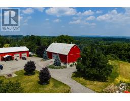 Welcome to this exceptional 96-acre farm estate, offering a rare combination of natural beauty, functionality, and long-term potential. Framed by sweeping south-easterly views of the Toronto skyline, the property features a fully renovated bank barn, a large immaculate workshop, and two charming residences the original 3-bedroom, 2-bathroom farmhouse and a detached 1-bedroom, 1-bath guest house. The landscape is a stunning blend of worked acreage, hardwood forest, multiple large ponds, and a cozy bunkie, providing incredible versatility for both lifestyle and business use. Situated on a regional road, the location offers excellent exposure and accessibility, making it an ideal candidate for a future business venture. Currently, the guest house is rented for $1,400/month plus utilities, and the farmland generates an additional $1,000/year, adding to the appeal of this unique and income-producing countryside retreat. (id:50886)