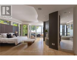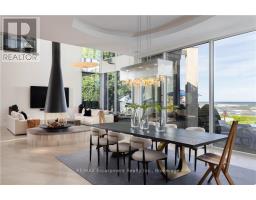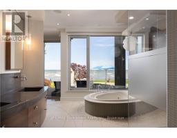 1540 Watersedge Road is a spectacular waterfront estate with jawdropping Toronto skyline views. Modern, private, and completely reimagined with extensive updates on all 3 levels and the exterior, including roof, flooring, staircase, automation, lighting, interior decor, redesigned garage and pool, with exterior landscaping including maintenance free lawn. Every element was designed to capture skyline views, natural light, and a lifestyle without compromise. Set on 0.6 acres along Lake Ontario, the residence showcases bold lines of glass, stone, and steel. Inside, walls of windows frame water and city vistas from every angle. The great room commands attention, anchored by a striking 360-degree fireplace. Heated floors and an elevator to all levels ensures both luxury and ease. A NEFF kitchen with pantry and laundry area balances style and function. The main-floor principal bedroom offers a spa-inspired ensuite and direct walkout to the deck. A versatile flex room, ideal as a gym or office, enhances the living space. Upstairs, three bedrooms with ensuites provide privacy and flexibility- two with terraces that extend directly to sweeping lake views. The lower level is designed for entertainment, featuring a home theatre, games lounge, secondary kitchen for catering and snacks, and guest suite. For the car enthusiast, the garage is exceptional, with epoxy flooring, custom cabinetry, and parking for six vehicles. Outdoors, the property becomes a private resort. A reimagined infinity-edge pool and spa by Gibson Pools stretches toward the horizon. Multiple terraces, dining areas, and lounging spaces are surrounded by perennial gardens and architectural features, blending beauty with simplicity.1540 Watersedge Road is a rare opportunity: a refined estate for contemporary living, equally suited for epic entertaining, where design, privacy, and breathtaking views meet on the lakefront. LUXURY CERTIFIED. (id:50886)