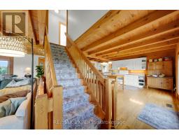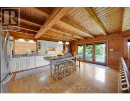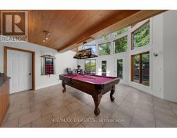 This unique log home with a spacious addition offers character, comfort, and incredible views -- including the CN Tower from the front porch! Set back from the road on a private lot, it features natural gas, municipal water and fibre optic internet, and a huge triple garage. Ideal for multi-generational living or income potential, the home includes two self-contained apartments with separate entrances. The upper unit (renovated in 2020) is bright and full of storage, while the lower-level unit has a sauna and its own parking and walkout to yard/patio. The main home boasts a window-lined living room, loft-style dining with skylight overlooking the billiard room, multiple walkouts, updated baths, and hardwood/tile floors. Recent updates include: roof (2022), furnaces & AC (2022), Windows/slider (2020), fascia & eaves (2024), municipal water (2022/23), new landscaping, baths, and flagstone walkway (2024). Originally built in 1998 with an addition in 2004/05, this lovingly cared-for property is perfect for families looking for space, privacy, and room to grow! A unique opportunity in the most perfect location!! (id:50886)