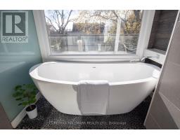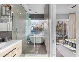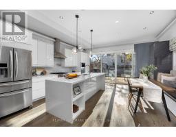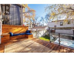 Welcome to 1549 Dundas St E, Where function meets refined urban design, this modern detached 3-bed, 4-bath home with 2 car parking blends architectural sophistication, thoughtful craftsmanship, and effortless everyday living. Ideally positioned between Leslieville & Riverdale, a short drive to the Beach. Inside, 10 ft ceilings on the main and second levels create a bright, open ambience, enhanced by oversized windows and floor-to-ceiling patio doors. Oak hardwood flows throughout, and the main level includes motorized blinds for privacy. Rooftop solar panels generate electricity and can also feed power back to the grid. The open-concept main floor centres around a chef-inspired kitchen with a Wolf range, stainless steel appliances, quartz island with seating, a built-in banquette, and a cappuccino machine. The living area features a gas fireplace and a seamless walkout to the entertainer's deck with a built-in and lounge & BBQ station . A glass gate leads to a private spa retreat with a hydrotherapy hot tub, plus a backyard with space for dining and play. A motorized garage door opens to the laneway for added convenience. Upstairs, the serene primary suite offers abundant light and a private balcony. The spa-like ensuite includes a dramatic two-person glass shower with a modern soaker tub inside. The walk-in closet features custom shelving and built-ins. The second bedroom is bright with a skylight, while the third includes custom built-ins and a desk. All bedroom closets, plus the main entrance closet, include high-quality custom storage systems. The lower level offers high ceilings, a separate entrance, and a full rough-in, creating flexibility for a future income suite, gym, media room, or in-law apartment. Pot lights, modern finishes, and smart-home-ready wiring complete the home. Steps to Greenwood Park, schools, TTC, cafés, and neighbourhood favourites like Blondies Pizza. This is standout modern living in one of Toronto's most vibrant pockets. (id:50886)