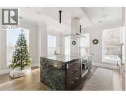 $1,627.49 MonthlyThis one-of-a-kind executive three level townhome is an extraordinary offering in the heart of Uptown Waterloo, crafted for those who expect an elevated standard of living. Every detail has been curated with intention, delivering three bedrooms, five bathrooms, and a level of refinement that reflects true luxury. The gourmet kitchen stands as a statement piece, featuring premium Thermador appliances, a Wolf commercial range hood, a sculptural marble waterfall island, and a full marble backsplash that together create an atmosphere of exceptional sophistication. Wide plank hardwood flooring, heated floors throughout all tiled areas and bathrooms, and expansive floor to ceiling windows shape the interior with warmth, natural light, and architectural elegance. The private top floor retreat offers a sanctuary of calm with a serene bedroom suite, spa inspired finishes, generous proportions, and an enhanced sense of privacy. Each additional bedroom is complete with its own ensuite, ensuring an uncompromised experience for family and guests. Everyday living is enriched by a private in suite elevator, in suite laundry, extensive storage, and a beautifully finished lower-level ideal for additional living, wellness, or an elevated work from home space. Residents enjoy exclusive access to exceptional amenities including full concierge service, a premium fitness centre, refined guest suites, a putting green, curated outdoor barbecue terraces, and an elegant party room designed for sophisticated gatherings. Three dedicated underground parking spaces and two storage lockers provide a rare level of convenience in an urban setting. Perfectly positioned in Uptown Waterloo, this residence offers immediate access to fine dining, boutique shopping, cafes, wellness studios, green spaces, live entertainment, transit, and the iconic Vincenzo's. A remarkable opportunity to experience luxury urban living where design, craftsmanship, and lifestyle converge at the highest level. (id:50886)