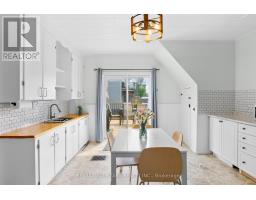 This delightful 1.5-storey home offers the perfect blend of character and modern updates, all within walking distance to the heart of Fenelon Falls. Situated on a beautifully landscaped 0.201-acre lot, the property features a newly built (2024) deck, lush new sod, rock pathways, and vibrant flower beds creating an inviting outdoor oasis. Step inside to a spacious covered front porch, ideal for morning coffee or relaxing evenings. The large eat-in kitchen boasts stylish butcher block countertops and a walkout to the deck and fully fenced side yard perfect for entertaining. The main floor also includes a bright living room, updated 2-piece powder room (2023), and a formal dining room with a convenient laundry closet and new laminate flooring (2024). Upstairs, you'll find cozy carpeting, three bedrooms, and a charming 4 piece bathroom featuring a classic clawfoot tub. The home also includes a basement/crawlspace, offering additional storage and utility space. With its prime location, thoughtful updates, and functional layout, this home is an excellent option for families, retirees, or anyone looking to enjoy all that Fenelon Falls has to offer. (id:50886)