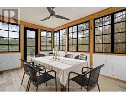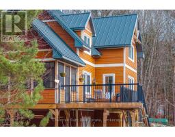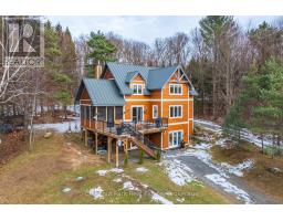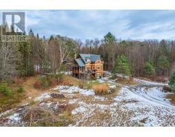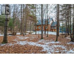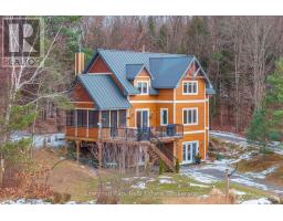 Welcome to 1555 Etwell Road, Huntsville-an exceptional custom-built 2,988 sq. ft. retreat set on 90 acres, where refined upgrades meet a relaxed, kick-your-shoes-off Muskoka lifestyle. Built in 2017 with remarkable attention to detail, this home features an inviting open-concept main floor with a beautifully upgraded kitchen, spacious dining area, and a warm great room anchored by a stunning river rock wood-burning fireplace. Large windows frame serene views of rolling fields and the forest beyond, enhancing the home's peaceful ambiance. A charming three-season Muskoka room extends the living space and is perfect for morning coffee or evening gatherings. Upstairs, the primary bedroom feels like a private sanctuary with its own balcony and cozy dormer sitting area, while the spa-inspired 5-piece bathroom offers double sinks, a glass shower, and a luxurious soaker tub. A second generously sized bedroom completes this level. The ground floor features a professionally renovated (2022) walkout basement that adds stylish, functional living space. The spacious recreation room is ideal for a games area, home gym, or family space, and two additional bedrooms, one with a walkout to the yard and provides excellent versatility for guests or extended family. A circular driveway framed by mature trees sets the tone for the tranquility and natural beauty surrounding the home. The 90-acre property includes hardwood and softwood forests, open meadows, a dramatic exposed granite ridge, and miles of trails to explore-perfect for outdoor enthusiasts and abundant wildlife. Whether you're seeking a year-round residence or a peaceful Muskoka getaway with room to roam, this exceptional property offers high-end comfort, relaxed charm, and convenient access to Huntsville's shops, schools, and amenities. A rare offering that truly must be experienced to be appreciated. (id:50886)