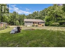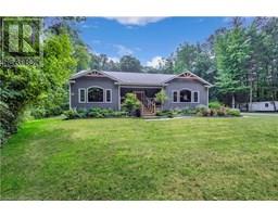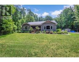 Tucked away on 8.5 acres of pristine forest, this exceptional country estate offers a rare combination of high end custom design, luxurious comfort, and total privacy—creating a peaceful retreat unlike anything else on the market! A long, winding laneway sets the tone as you arrive, leading through towering trees to a beautifully crafted home completely surrounded by nature. With its own private walking trails and endless greenery views, this property feels like your own woodland wonderland. Inside, soaring cathedral ceilings and oversized windows flood the space with natural light and frame the lush landscape in every direction. At the heart of the home is a stunning chef’s kitchen, anchored by a 9-foot island, high-end appliances, double ovens, and elegant finishes—perfect for hosting unforgettable gatherings or cozy nights in. The main floor features three spacious bedrooms, including a tranquil primary suite with a spa-like ensuite complete with a freestanding clawfoot tub, walk-in closet, and serene forest views. The other two bedrooms are connected by a beautifully designed Jack and Jill bathroom, offering each room its own ensuite-style access for elevated comfort. Fully finished lower level, thoughtfully designed for entertaining and relaxation. Enjoy movie nights in your own home theatre, unwind in the lounge area, or host guests at the custom-built wet bar in the expansive rec room. Every corner of this home reflects quality, craftsmanship, and care. A double attached garage plus shed offer secure parking and storage, with endless additional space for future expansion. With manicured gardens, a raised vegetable bed, and trails that wind through the trees, the outdoor space is just as magical as the interior. Whether you’re seeking a private family haven, multi-generational retreat, or simply a slower pace surrounded by nature, this property offers endless potential and true lifestyle appeal—just a short drive to town. (id:50886)
