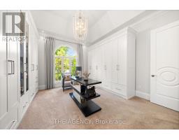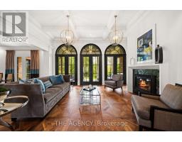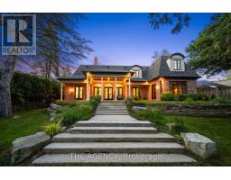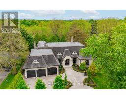Welcome to this extraordinary bungaloft, nestled on a private, wooded lot and offering the perfect balance of luxury, function, and architectural detail. The main level impresses with 12-foot ceilings, walnut flooring and high-end finishes throughout. Tray ceilings in the formal dining room, coffered ceilings in key living spaces, and solid core doors enhance the sense of quality and scale. Expansive transom windows and high baseboards add architectural charm and natural light throughout. The main floor principal bedroom offers a serene retreat with tray ceilings, garden doors leading to the rear yard, and a stunning ensuite featuring marble tile with inlay, a freestanding tub, a glass-enclosed shower, dual vanities, and a spacious walk-in closet with custom built-ins and dual access. The family room is warmed by a wood-burning fireplace, while the separate living room offers a cozy natural gas fireplace. Two separate mudrooms-one off the front foyer and one off the garage-add everyday practicality to the homes thoughtful layout. The kitchen features premium Wolf appliances, a farmhouse sink, pot filler, and a large island with seating. The adjacent servery includes a fridge, wall oven, microwave, and a secondary sink-ideal for hosting. Upstairs, the loft provides a versatile living area, two generously sized bedrooms, and a beautifully finished main bath with a double vanity, freestanding tub, glass shower, and elegant tile inlay flooring. The lower level adds versatility with two additional bedrooms and rough-in. A walk-up to the triple car garage enhances convenience and supports multi-generational living. Outside, enjoy a private, two-tiered backyard oasis with a covered rear porch, perfect for relaxing or entertaining. The expansive driveway offers parking for up to eight vehicles, in addition to the spacious triple car garage with built-in storage, completing this exceptional property. (id:50886)