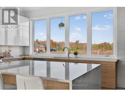Nestled just minutes north of Kingston, this luxurious estate-style home combines timeless craftsmanship with modern sophistication. Built on a solid ICF foundation and wrapped in a full masonry exterior, it stands as a true testament to elegant and enduring design. Step through premium doors into a grand foyer with soaring ceilings, where Gaylord hardwood floors flow throughout the home. The open-concept main level is anchored by a striking gas fireplace in the living room-creating warmth and ambiance that beautifully complement the home's architectural character. At the heart of the home, a gourmet kitchen worthy of a magazine spread features a waterfall island, custom cabinetry, and stainless steel appliances, including a full-sized fridge and stove. Upstairs, glass railings and hardwood staircases showcase the fine attention to detail, leading to a spa-inspired primary ensuite with a glass-enclosed shower-your private retreat at the end of the day. Outside, a covered rear deck overlooks the expansive backyard, offering a perfect setting for entertaining or quiet evenings outdoors. With a three-car driveway, premium construction, and the reassurance of a Tarion new-home warranty, this home blends style with long-term confidence.This is estate-style living at its finest-a statement residence that balances grand design, premium finishes, and lasting quality in a serene, highly desirable location. (id:50886)