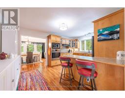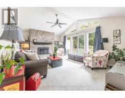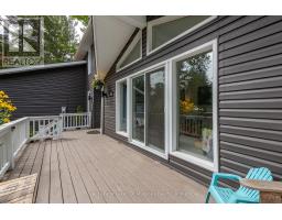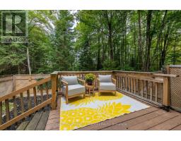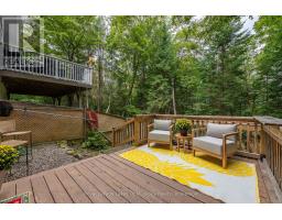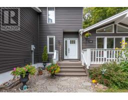 Sought after sunlit and spacious 4 bedroom plus den, 3+1 bathroom is an ideal residence in the heart of Hidden Valley community. Ski to the hill or stroll to the fabulous 300'+ beachfront on prestigious Pen Lake with a private park featuring beach volleyball, bathroom, picnic tables, space to play or lounge as part of your membership in the Hidden Valley Property Owners Association. Great interior design with large sunlit primary rooms. The sunlit living room has vaulted ceilings, Muskoka stone gas fireplace and sliding patio doors to front deck. Hardwood flooring in beautiful country size kitchen including newer up to the minute white cabinetry with glass doors, eat at counter, large window with forest views over your very private back yard. Lovely hardwood floors continue into the dining and sitting room with french style doors to large rear deck ideal for barbequing, entertaining featuring an included gazebo. Main level primary bedroom with 3 piece ensuite is privately positioned in the residence away from other living spaces. 2nd level features 2 bright and spacious bedrooms and 4 pc bath. Lower level has a large family room with a gas fireplace and a fun party room with a potential wet bar and large patio door to another rear deck and patio. 1 bedroom plus den and an up to date 4 pc bathroom walk out door to the rear yard completes the lower level. Recreational residence is a pleasure to view with many upgrades including the septic bed was updated in 2018 (rated for 3 bdrms), gas furnace new in 2024, new electrical panel & some newer windows. The home boasts maintenance free vinyl siding, absolute private rear yard with level space for kids, gardens, potential for swimming pool, set back nicely from the street, attached single car garage. Located in one of the best areas for year round active living with bike trails, ski hill, beach, resorts, restaurants, golf all within walking distance or a short drive. Only 10 minutes to downtown Huntsville. (id:50886)