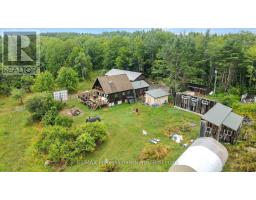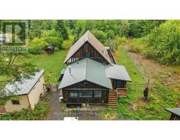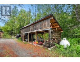 Welcome to Clear Glade Farm. Whether you are looking for complete privacy or the ultimate homesteading opportunity, this property is perfect. Take a closer look at what this property has to offer. The 3 bedroom, year-round home offers a sunroom/mudroom entry, a large livingroom with space for everyone and an open-concept kitchen/dining area with a beautiful view and a walkout to the large deck. Downstairs is full of potential. Additional rooms are drywalled and ready for paint and flooring, and there is a roughed-in for an additional washroom. Upstairs, the primary bedroom comes with a balcony, again overlooking the amazing vista. A 28'x60' detached garage is garage in the front, with walls started for a full 3 bdrm, 1 bath apartment in the back. The Garage has ICF walls with slab foundation, an attic, metal roof, and is heated with in-floor heating from the outdoor wood furnace. The 37 acre property is partially covered under a Forest Management System for reduced taxes, has a beautiful glade with a roughed-in roadway, comes with 2 tiny homes on foundations (insulated but undeveloped inside), a large shelter, a greenhouse, woodshed, a Russian sauna and more. Watch the wildlife from the deck, or get busy with gardens - this property has something for everyone. Are you into permaculture? A full permaculture plan has been created for this property and can be shared with the potential buyer if they like. 10 minutes from Minden, and 35 minutes to Haliburton for amenities and events/activities. (id:50886)