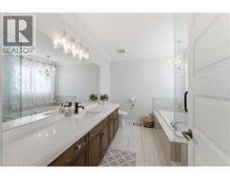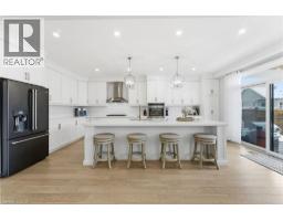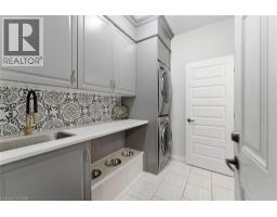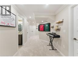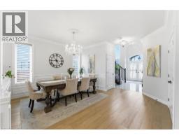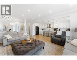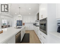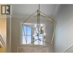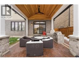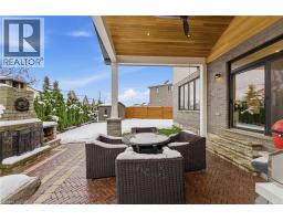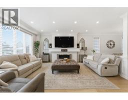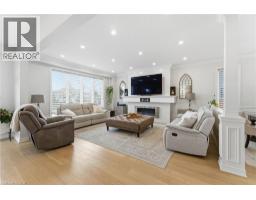 Welcome to 16 Festival Way, an executive residence featuring nearly 3,700 sq. ft. of luxuriously finished living space, set on a large, pool-sized, pie-shaped lot. Nestled in one of Binbrook's most prestigious courts, this exceptional 4 bedroom, 4 bath home effortlessly blends timeless elegance with modern sophistication. Step into the impressive 2-storey foyer, where wainscoting and herringbone tile set the tone for refined design. The open-concept main floor showcases natural white oak hardwood and crown moulding throughout, creating an inviting yet upscale atmosphere. At the heart of the home lies the custom chef-inspired kitchen, featuring an expansive 10-foot island, oversized cabinetry, quartz countertops, and top-of-the-line GE Café and Jenn-Air appliances. The adjoining living room centers around a custom tiled bio-ethanol fireplace, while the formal dining room, powder room, and laundry/mudroom complete this beautifully designed level. Beyond the 8-foot glass doors, your outdoor oasis awaits a custom stone kitchen with concrete countertops, built-in natural gas Napoleon grill, and a spacious covered patio with cedar ceiling & pot lights ideal for year-round entertaining. A massive stone fireplace adds warmth and ambiance, making this the perfect retreat for cozy evenings. The upper level continues to feature white oak hardwood floors and crown moulding, leading to four generous sized bedrooms. The primary suite is a true sanctuary, featuring a spa-inspired 4-piece ensuite and a custom-built walk-in closet designed for ultimate organization and style. The fully finished basement provides comfort and versatility, complete with plush designer carpeting, an open-concept media room with a 130 high-end projector screen and built-in surround sound system, plus an oversized gym with mirror wall, a 3-piece bathroom, and ample storage. This remarkable home is rare, combines luxury, craftsmanship, and thoughtful design inside and out. (id:50886)