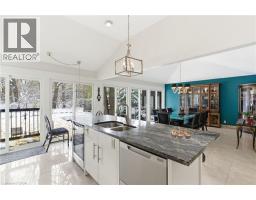 Welcome to Westdale’s Hidden Gem! Tucked away on a quiet court backing onto Royal Botanical Gardens property, this stunning brick bungalow offers the perfect blend of privacy, nature, and modern comfort. Set on a gorgeous pie-shaped lot surrounded by mature trees, it truly feels like a private retreat in the city. Inside, you’re greeted by a bright, open foyer leading to a show-stopping great room and kitchen with vaulted ceilings and wall-to-wall windows overlooking the lush backyard. The chef’s kitchen features sleek cabinetry, granite counters, a large island with seating for four, a wine fridge, and built-in double ovens, ideal for entertaining. The spacious primary suite is a true escape with a gas fireplace, hardwood floors, walk-in closet, and spa-like ensuite with jetted tub and double vanities. Two additional bedrooms and two 3-piece baths complete the main floor. The lower level offers incredible in-law potential with full-size windows (2’6” above grade), a separate side entrance, second kitchen, large family room with fireplace, and two possible bedrooms, perfect for multi-generational living or guest accommodations. Step outside to enjoy the peaceful setting, concrete patio, and sprawling yard bordered by the RBG’s greenery. Moments from McMaster University, Cootes Paradise, the shops and cafés of Westdale, and easy access to Highway 403. A rare opportunity in one of Hamilton’s most desirable pockets, come experience the beauty of Freeland Court! (id:50886)