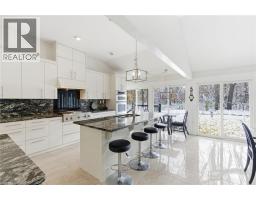 Welcome to Westdale’s Hidden Gem! Tucked away on a quiet court backing onto Royal Botanical Gardens property, this stunning brick bungalow offers the perfect blend of privacy, nature, and modern comfort. Set on a gorgeous pie-shaped lot surrounded by mature trees, it truly feels like a private retreat in the city. Inside, you’re greeted by a bright, open foyer leading to a show-stopping great room and kitchen with vaulted ceilings and wall-to-wall windows overlooking the lush backyard. The chef’s kitchen features sleek cabinetry, granite counters, a large island with seating for four, a wine fridge, and built-in double ovens, ideal for entertaining. The spacious primary suite is a true escape with a gas fireplace, hardwood floors, walk-in closet, and spa-like ensuite with jetted tub and double vanities. Two additional bedrooms and two 3-piece baths complete the main floor. The lower level offers incredible in-law potential with full-size windows (2’6” above grade), a separate side entrance, second kitchen, large family room with fireplace, and two possible bedrooms, perfect for multi-generational living or guest accommodations. Step outside to enjoy the peaceful setting, concrete patio, and sprawling yard bordered by the RBG’s greenery. Moments from McMaster University, Cootes Paradise, the shops and cafés of Westdale, and easy access to Highway 403. A rare opportunity in one of Hamilton’s most desirable pockets, come experience the beauty of Freeland Court! (id:50886)