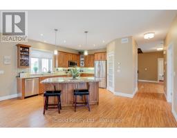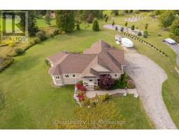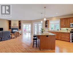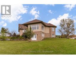 Welcome to this beautifully designed Executive-Style Bungaloft, nestled on a private 1.65-acre lot and offering an impressive 3,481 sq. ft. of above-ground living space with 4 spacious bedrooms, 4 elegant bathrooms, and a 2.5-car garage. This thoughtfully designed home blends luxury, comfort, and functionality across every level, including extra wide stairways and hallways. Enjoy your private primary bedroom suite in the loft, complete with an Extra Large walk-in closet, heated floors, and a luxurious 4-piece ensuite bath. This serene space also includes a dedicated study/den, perfect for working from home or unwinding with a good book.The heart of the home boasts a chef-inspired kitchen with a walk-in pantry, quartz island and countertops, custom cabinetry, and a walkout to the deck, perfect for entertaining while enjoying views of the beautifully landscaped backyard.The open-concept main level seamlessly connects the living and dining areas, highlighted by a stunning double-sided fireplace shared with the sunroom. The sunroom is a perfect place to relax year-round, overlooking the natural beauty of the backyard with spectacular sunsets. The main level also features two additional bedrooms, including a second primary suite with a walk-in closet and private 3 pc ensuite bath. Enjoy the ease of a main-level laundry room complete with built-in cabinetry and sink.Multiple walkouts lead to the expansive deck and private backyard, offering a seamless indoor-outdoor living experience.All upper-level bathroom cabinetry is crafted from premium maple, showcasing the quality and craftsmanship throughout the home. (id:50886)