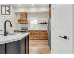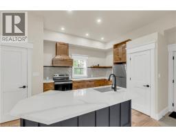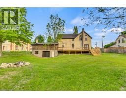 Welcome to 16 Hillcrest St W in Teeswater - a beautifully updated 2-bedroom, 2-bathroom home where small-town charm meets modern comfort. Nestled on a quiet street, this home features a timeless yellow brick exterior, new limestone-silled windows, and a welcoming wraparound concrete porch. Inside, natural light pours through brand-new windows, highlighting the open-concept living and dining areas with maple hardwood floors and crisp white trim. The custom kitchen is a showstopper, complete with quartz countertops, new appliances, ample cabinetry, and workspace designed to inspire any home chef. Upstairs, the serene primary suite includes a walk-in closet and a private laundry closet, while the second bedroom offers flexible use as a guest room, office, or den. The 3-piece bath showcases a quartz vanity and spa-like finishes, complemented by a convenient main-floor powder room. The lower-level workroom - with garage door access - is ideal for hobbies or storage. Step outside to a spacious wrap-around deck overlooking a lush yard that extends to the picturesque Teeswater River. Additional features include a 2-car attached garage, updated exterior and garage doors, soffit, fascia, eaves, solid wood interior doors with Weiser hardware, and modernized electrical and plumbing systems. This move-in-ready gem blends peace, style, and practicality - your perfect escape awaits. (id:50886)