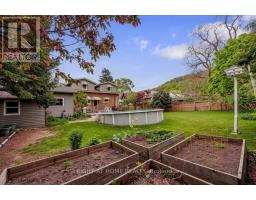 Welcome to 16 Nelles Boulevard a timeless Schafer-built century home nestled beneath the Niagara Escarpment on one of Grimsby's most iconic tree-lined streets. Set on a rare fenced double lot, the property is a gardener's paradise with fruit trees, raised vegetable beds, perennial landscaping, and an above-ground pool. Enjoy sunrise coffee on the secluded front veranda, and unwind at sunset on your private backyard patio. Inside, you'll find original character beautifully preserved including gleaming hardwood floors with black walnut inlay, French doors, and trim work true to the era. The spacious principal rooms include gas fireplaces in both the living and family rooms, while the updated eat-in kitchen features granite counters, a 5-burner gas stove, and generous cabinetry. Main floor laundry and a fully finished basement rec room add modern convenience. An attached Lord & Burnham greenhouse offers a rare four-season retreat for plant lovers and creatives alike. Major plumbing update in 2021: sewer and drain lines professionally replaced as a proactive measure. Listed on the municipal Heritage register, notification of historical interest , NOT heritage designation (id:50886)